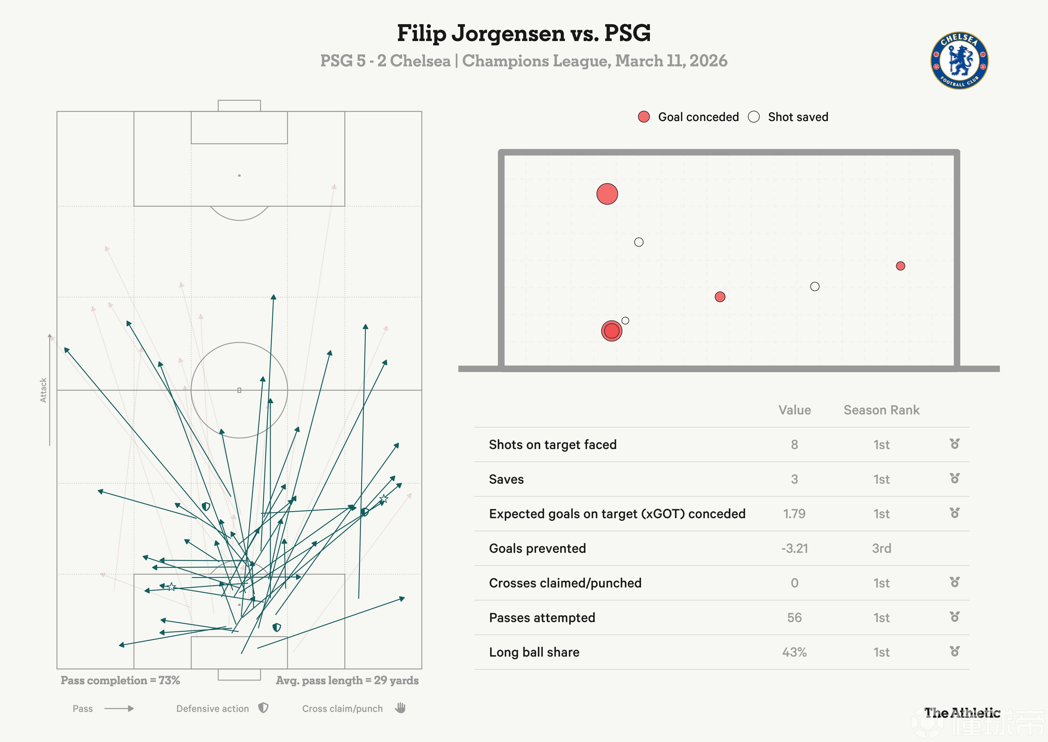 罗塞尼尔辩解的核心是,约恩森恰恰是在他对阵PSG时搞砸的那种情况下,比桑切斯做得更好。这个足球判断是他的工作,而且很可能是正确的,但是约恩森是否足够优秀,能够成为切尔西在这些比赛中生存并获胜所需要的那个人?