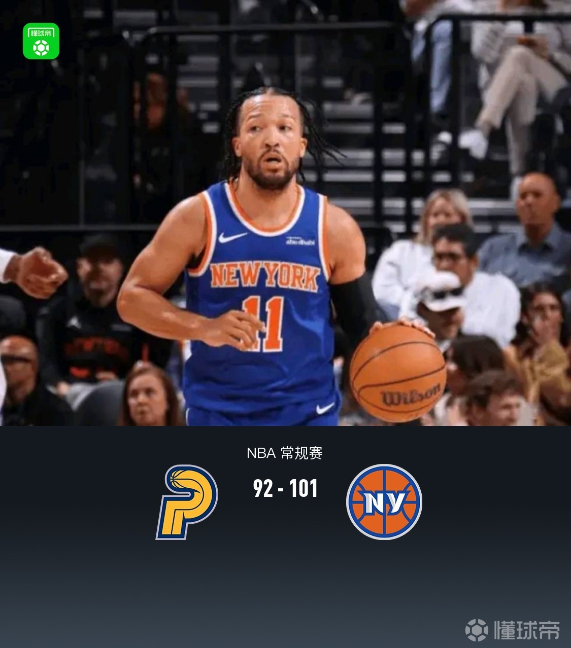 尼克斯101-92力克步行者,布伦森29分,米罗12+22